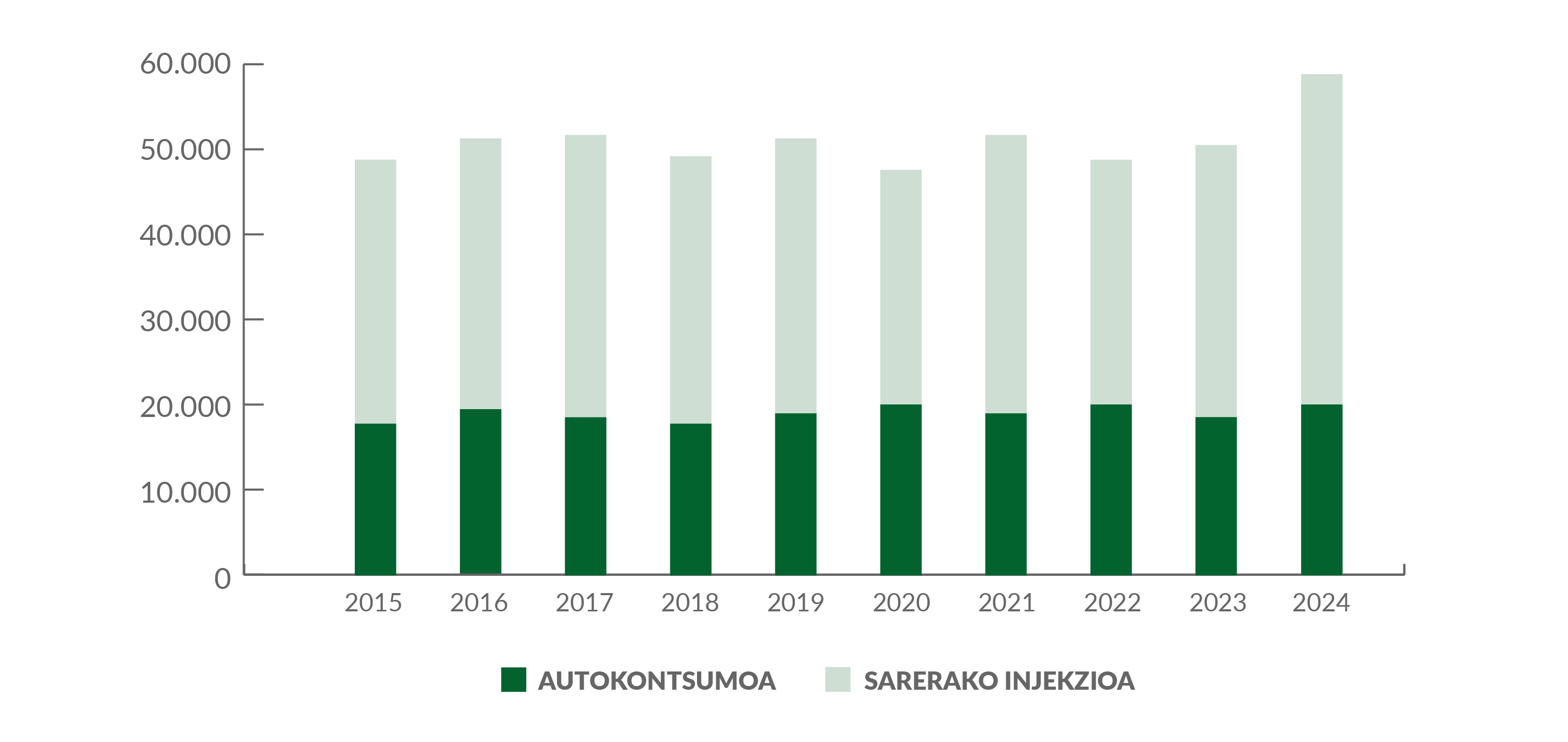 Autokontsumitutako eta sarera isuritako energiaren bilakaera